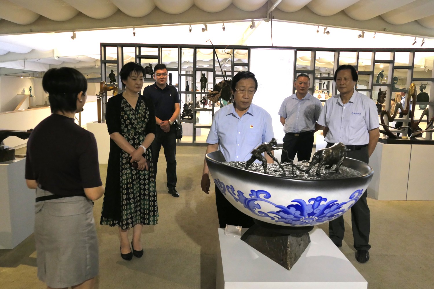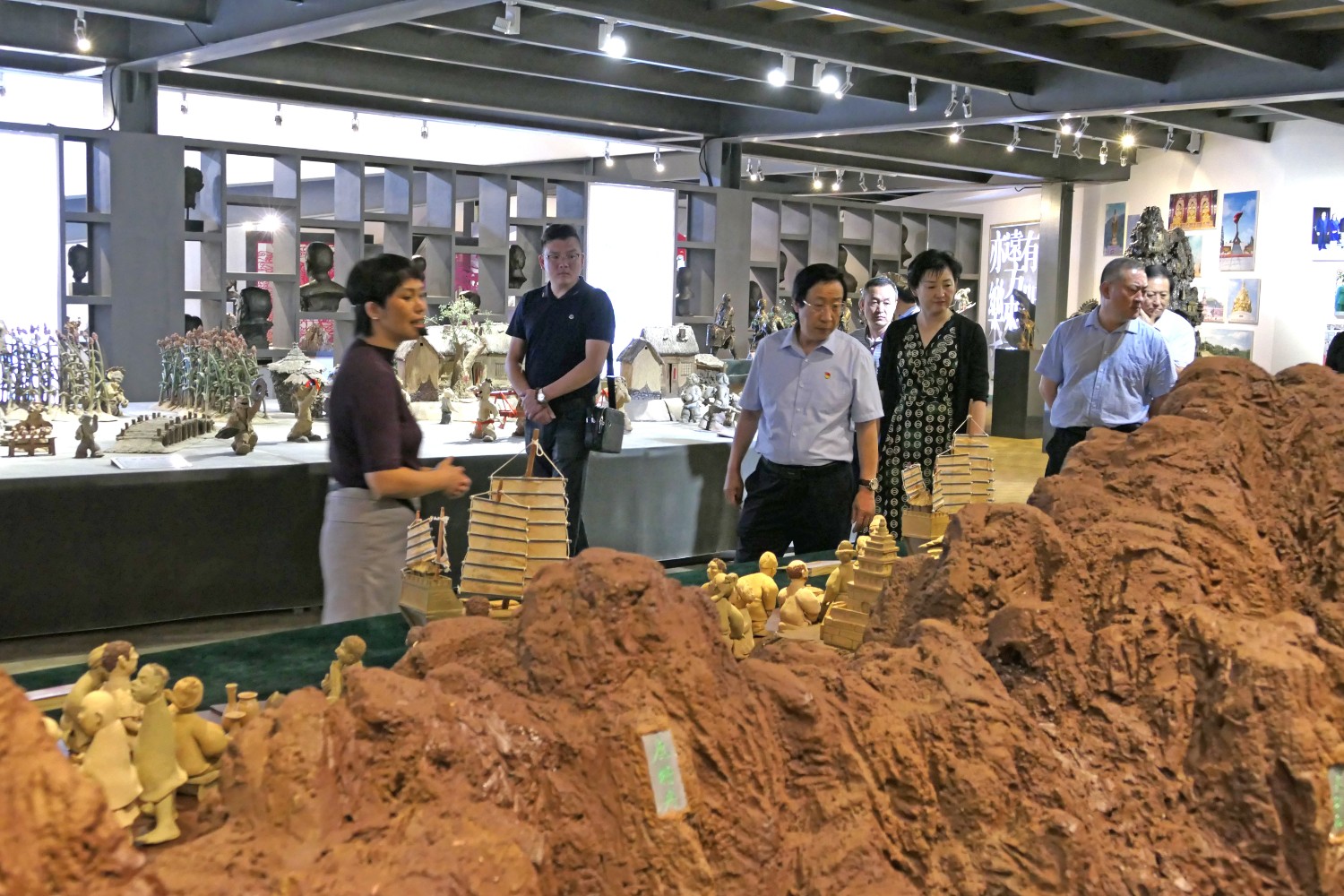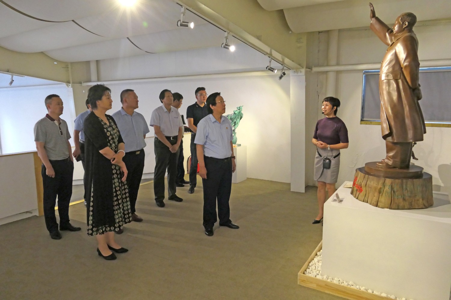 2020年6月17日山东民族文化艺术学习考察团张永正、青岛大正民族文化艺术研究院崔适玉院长等领导在临朐县文联主席李咏梅的陪同下来华艺参观指导。