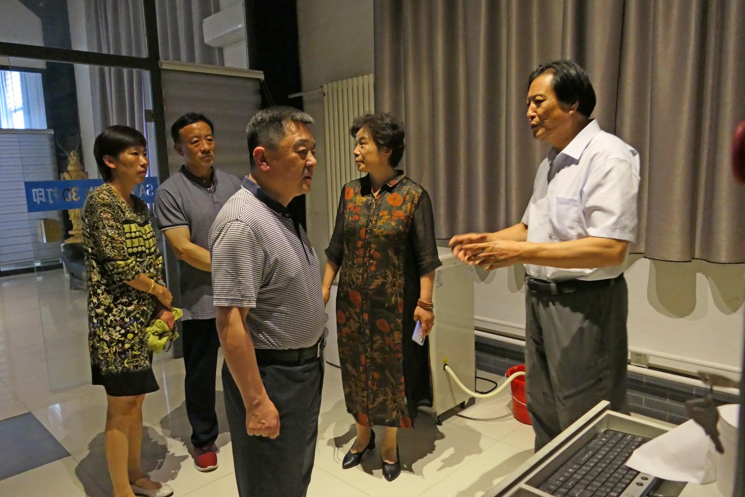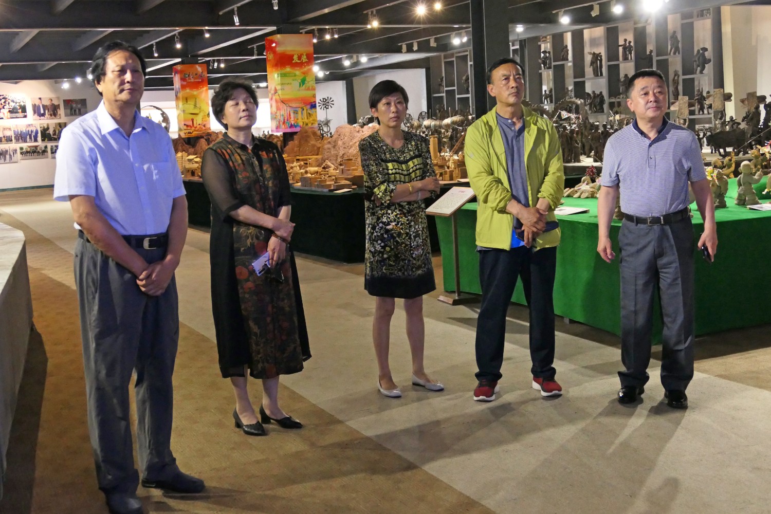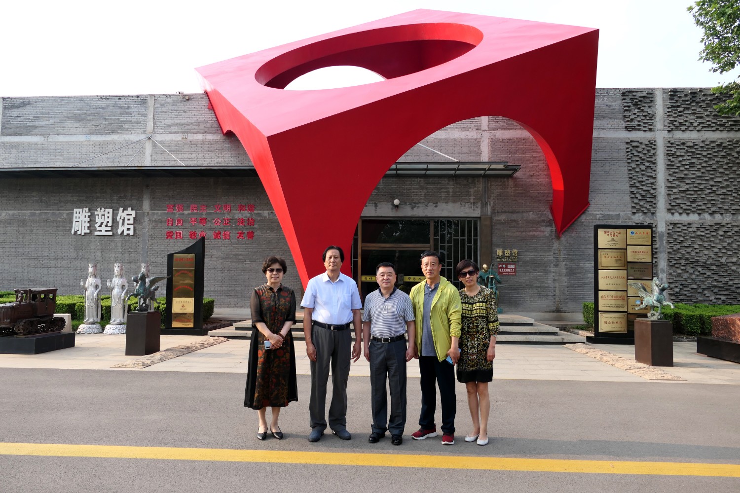 2020年6月27日济南阳光保险葛斌总经理、淄博四合美术馆王丽君馆长、青岛客人金砚先生等一行莅临华艺参观指导,傅绍相介绍雕塑艺术。