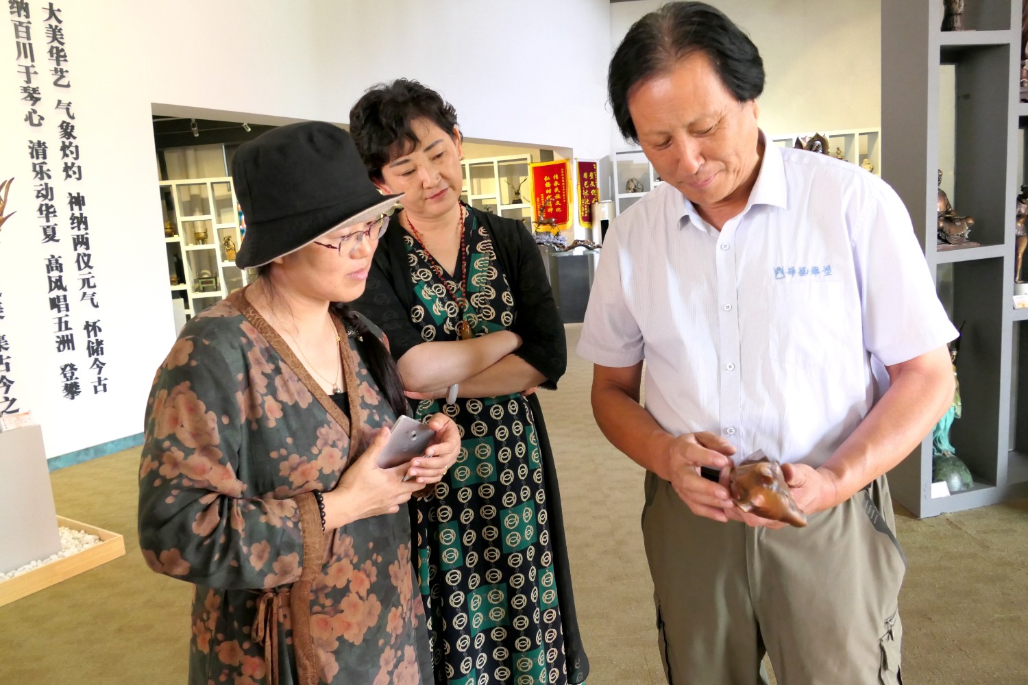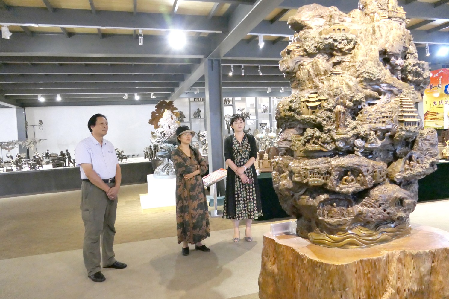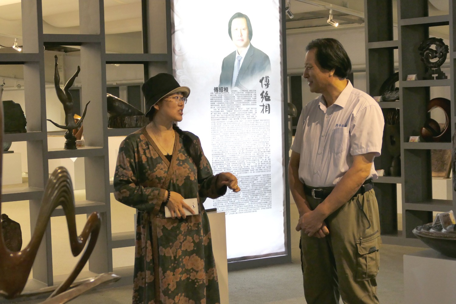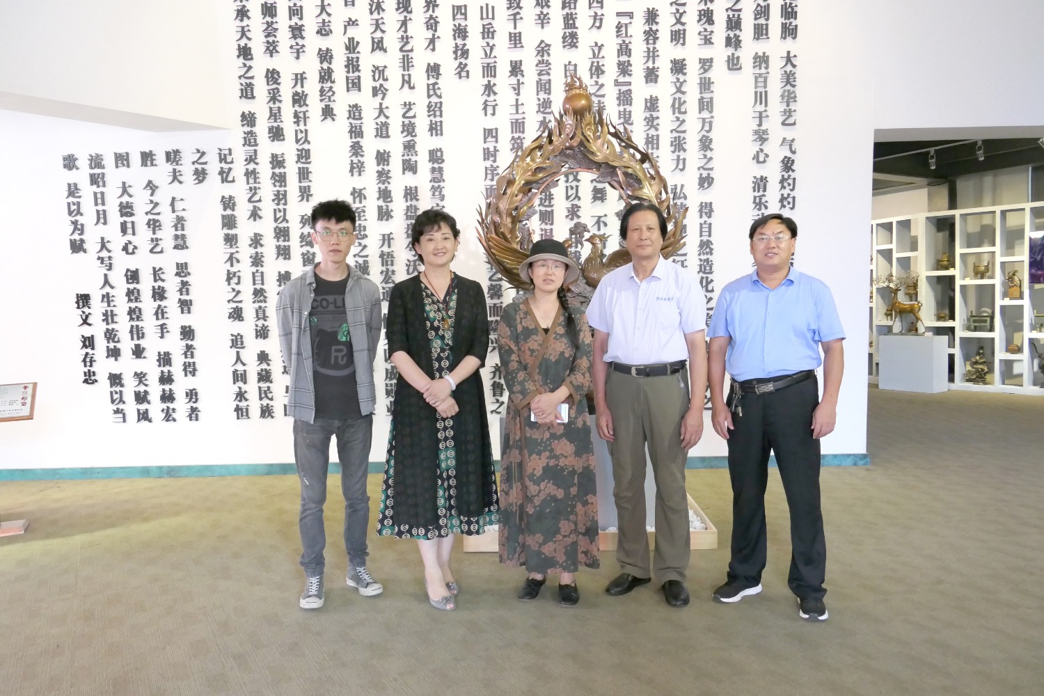 2020年7月12日临朐县文联主席李咏梅、副主席张克奇陪同中国艺术报社《文化时空》执行主编伊红梅莅临华艺雕塑参观指导,董事长傅绍相作品《书香门第》赠送伊红梅女士留作纪念。