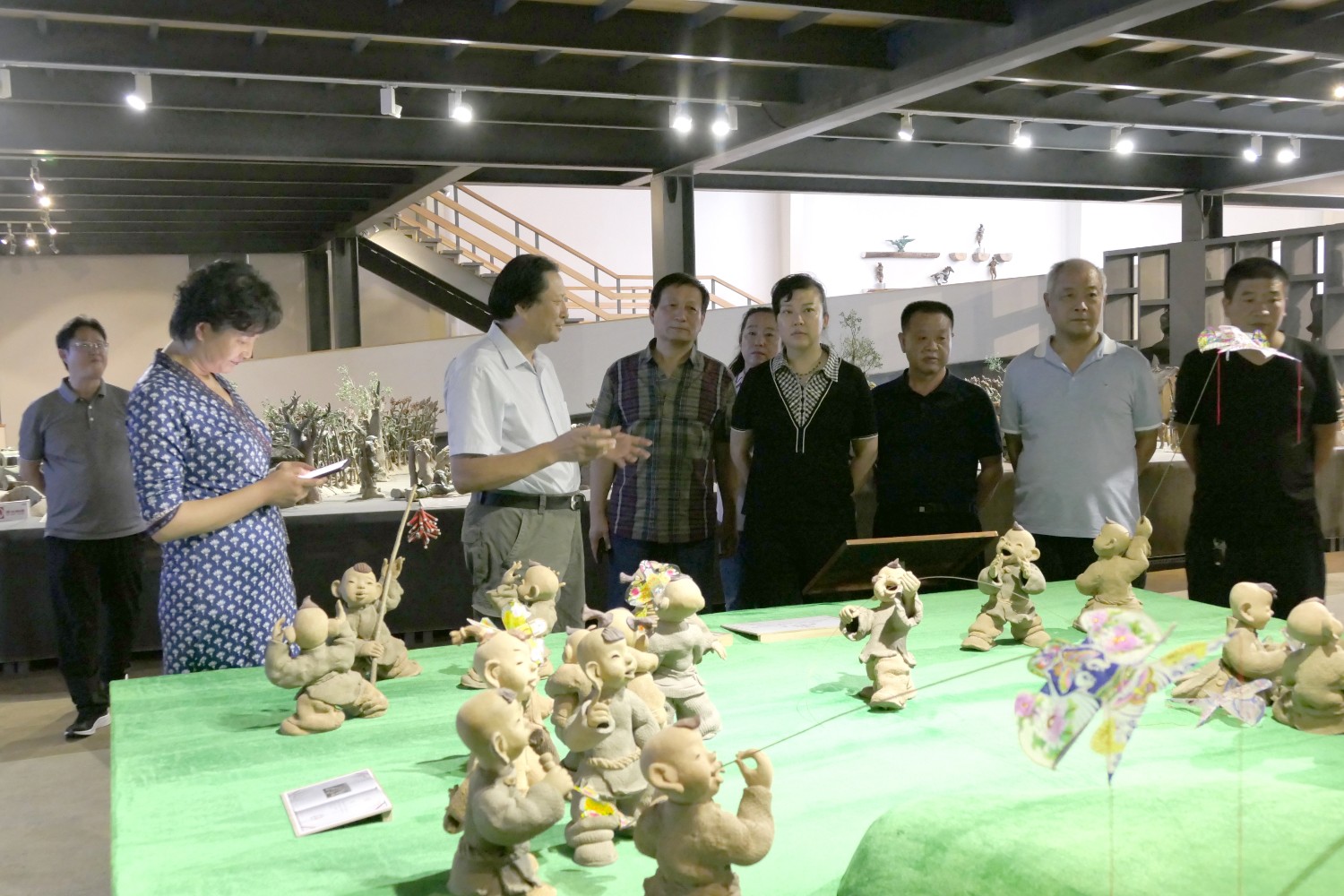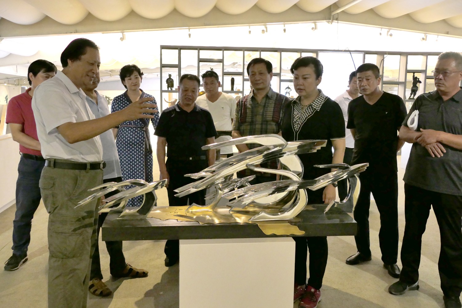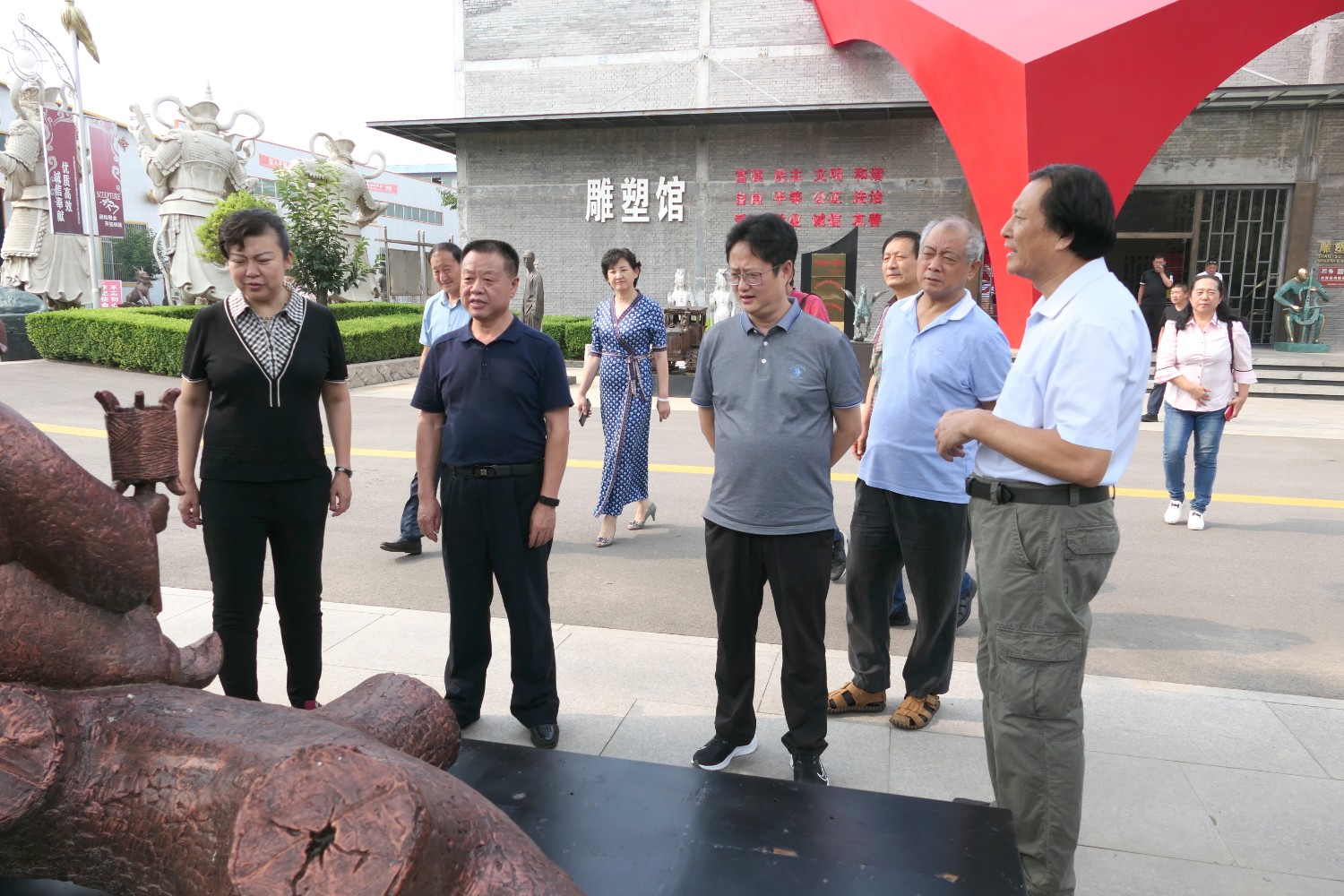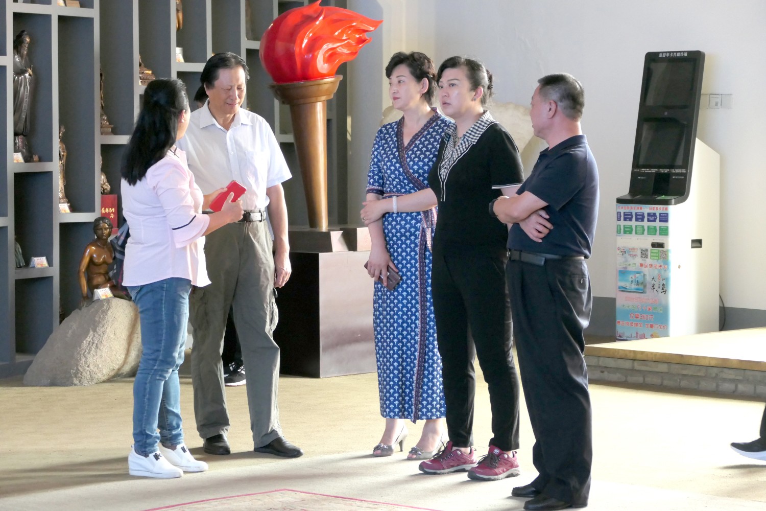 2020年7月14日致公党山东主委姜明、省工商联郭建礼副主席、山东财经大学刘春红教授一行,在临朐县文联主席李咏梅陪同下莅临华艺参观指导,傅绍相与领导及艺术家进行了交流。