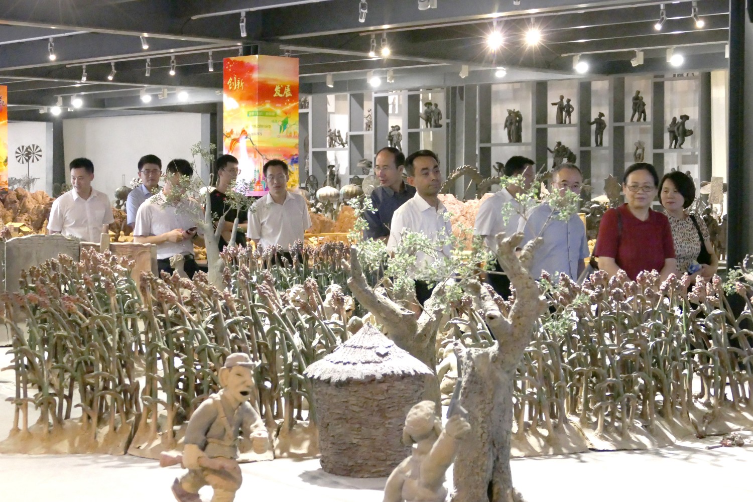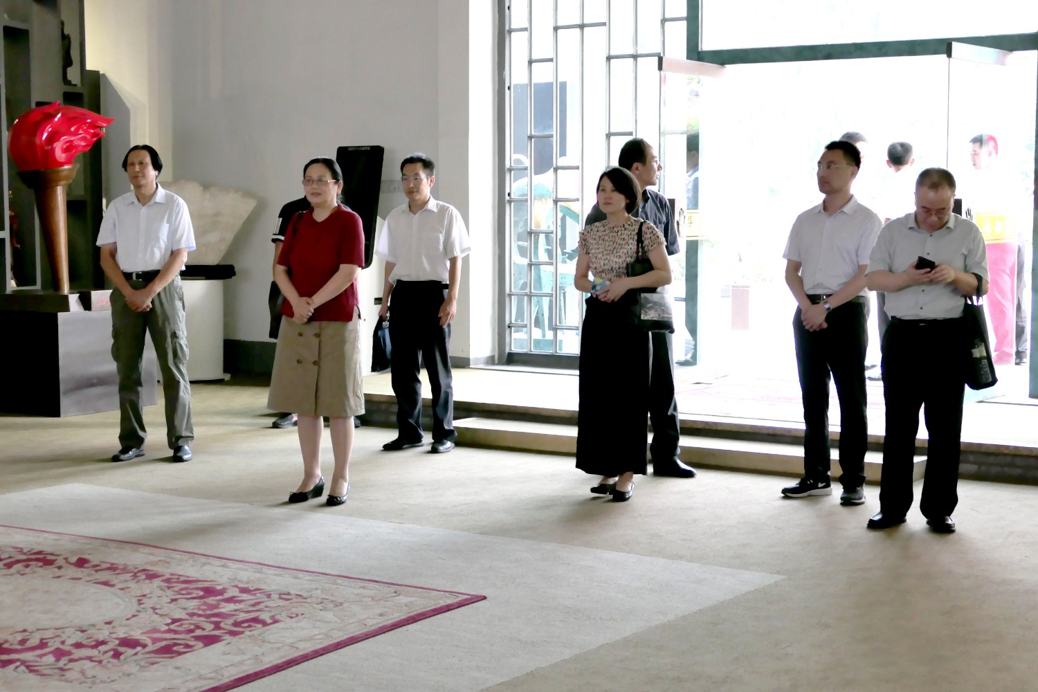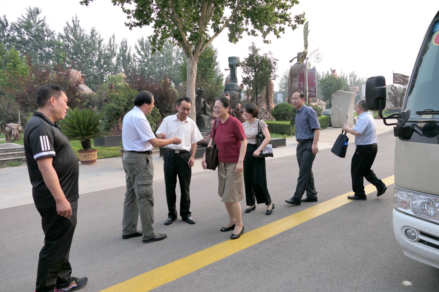2020年7月14日山东省委办公厅信息研究室一级调研员瞿环玲一行6人来临朐调研党委信息工作及文旅产业发展及美丽乡村建设等课题,嘉宾莅临华艺雕塑参观指导。
