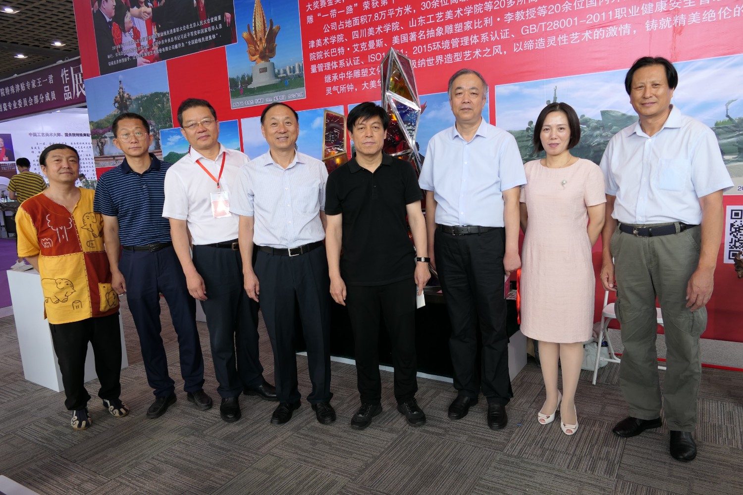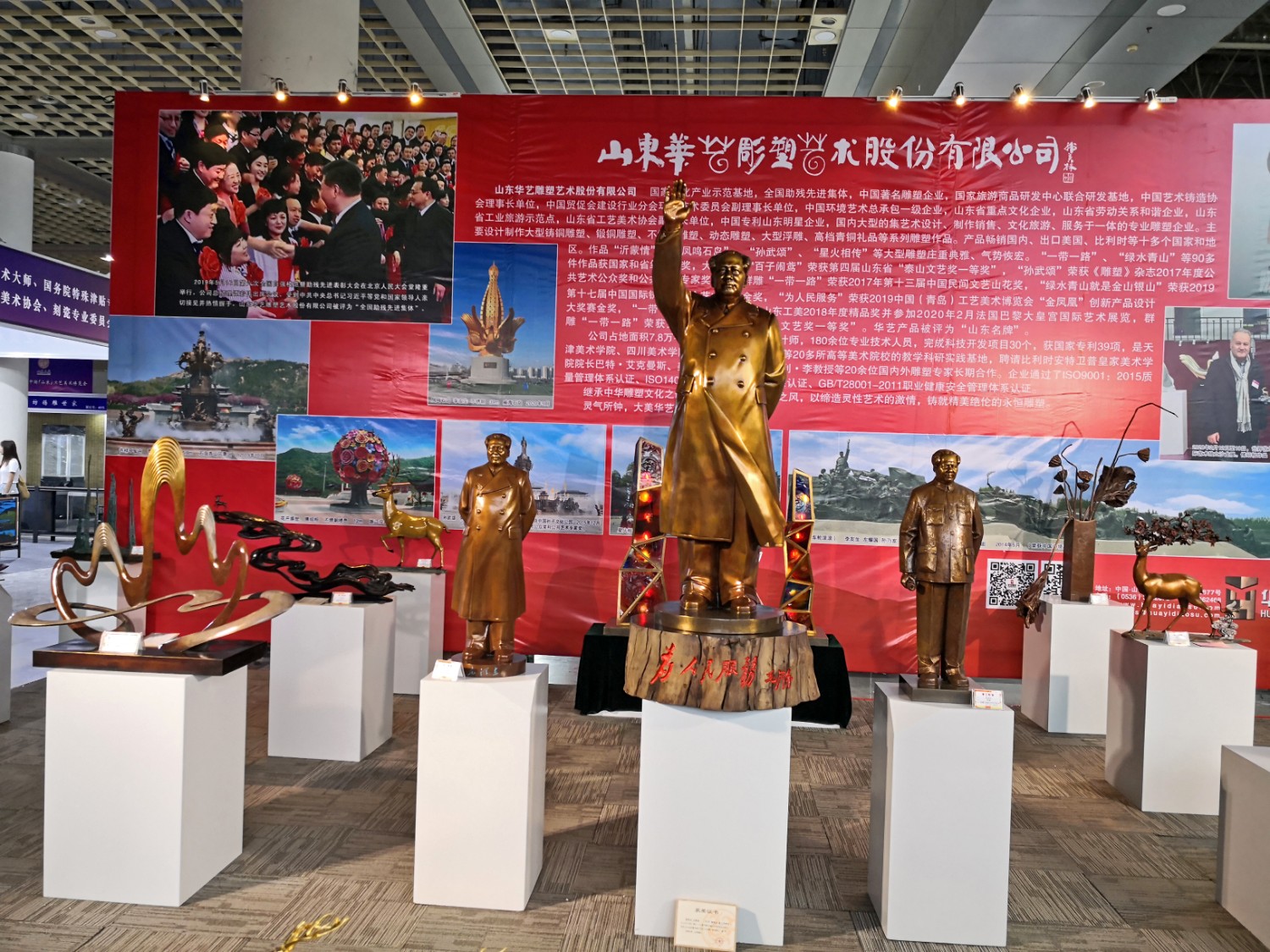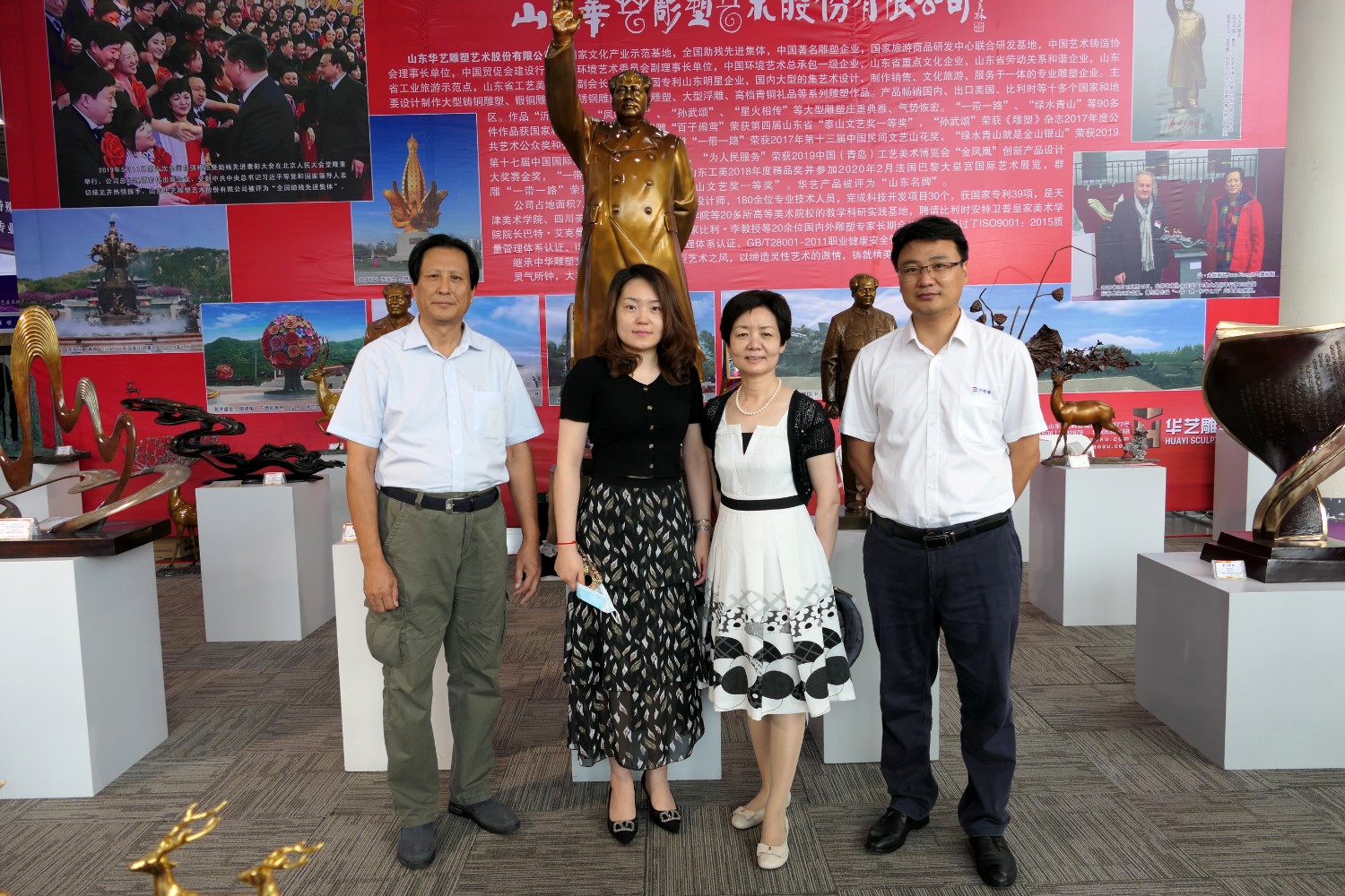 2021-2-32020年7月23日由山东省工艺美术协会、山东省工艺美术学会、山东省工艺美术研究所主办的“2020第十二届中国(山东)工艺美术博览会”在济南舜耕国际会展中心盛大开幕,出席本次开幕式的有山东省残疾人联合会一级巡视员张志超,山东省工业和信息化厅二级巡视员张忠军,山东省轻工集体企业联社党组成员、监事会主任柴本成,山东省文学艺术界联合会党组成员、副主席姜慧,山东省工业技师学院党委书记孙科顺,山东省财政厅总经济师文毅,民建山东省委副主委、山东省拍卖行业协会会长李伟,山东省市场监督管理局质量发展处一级调研员高青,淄博市委宣传部副部长、二级调研员荣先锋,山东省文化和旅游厅非遗处副处长蒋士秋,山东省轻工纺织工会委员会副主席匙涛,山东省工艺美术学会会长傅绍相等领导及嘉宾。山东省工艺美术协会会长袁敏主持开幕式。本届展会由山东省工艺美术协会、山东省工艺美术学会、山东省工艺美术研究所共同主办,有关省市工艺美术协会、各市工艺美术协会(学会)、省工艺美术协会各专业委员会(分会)协办,山东省工艺美术协会、山东省工艺美术学会、山东省工艺美术研究所承办。华艺雕塑精选81件作品参加展览,其中傅绍相作品《绿水青山》荣获山东工美年度精品奖,傅绍相作品《琉光璃韵》荣获“泰山桃木王”杯设计创新奖金奖;傅东作品《鹿鸣吉祥》荣获“泰山桃木王”杯设计创新奖金奖;牛运强作品《凝聚》荣获“泰山桃木王”杯设计创新奖金奖;傅思涵作品《鹿鹤同春》荣获“泰山桃木王”杯设计创新奖金奖;谭炳作品《飞武汉战疫情》荣获“泰山桃木王”杯设计创新奖金奖。