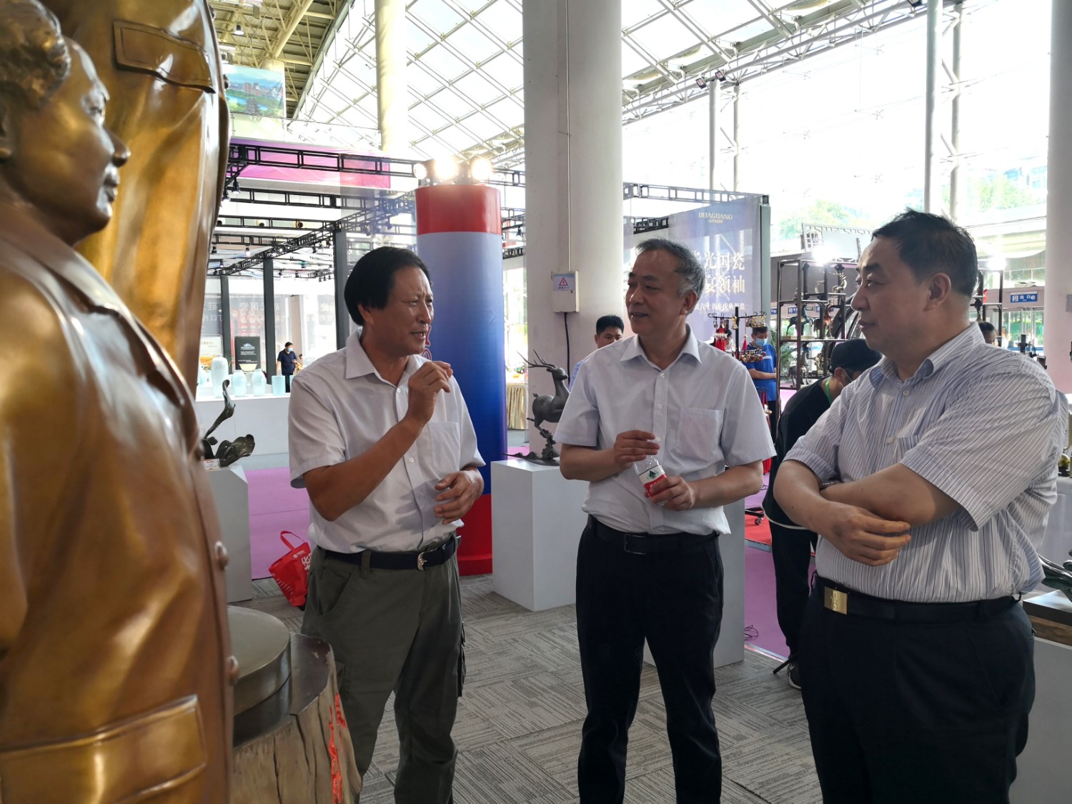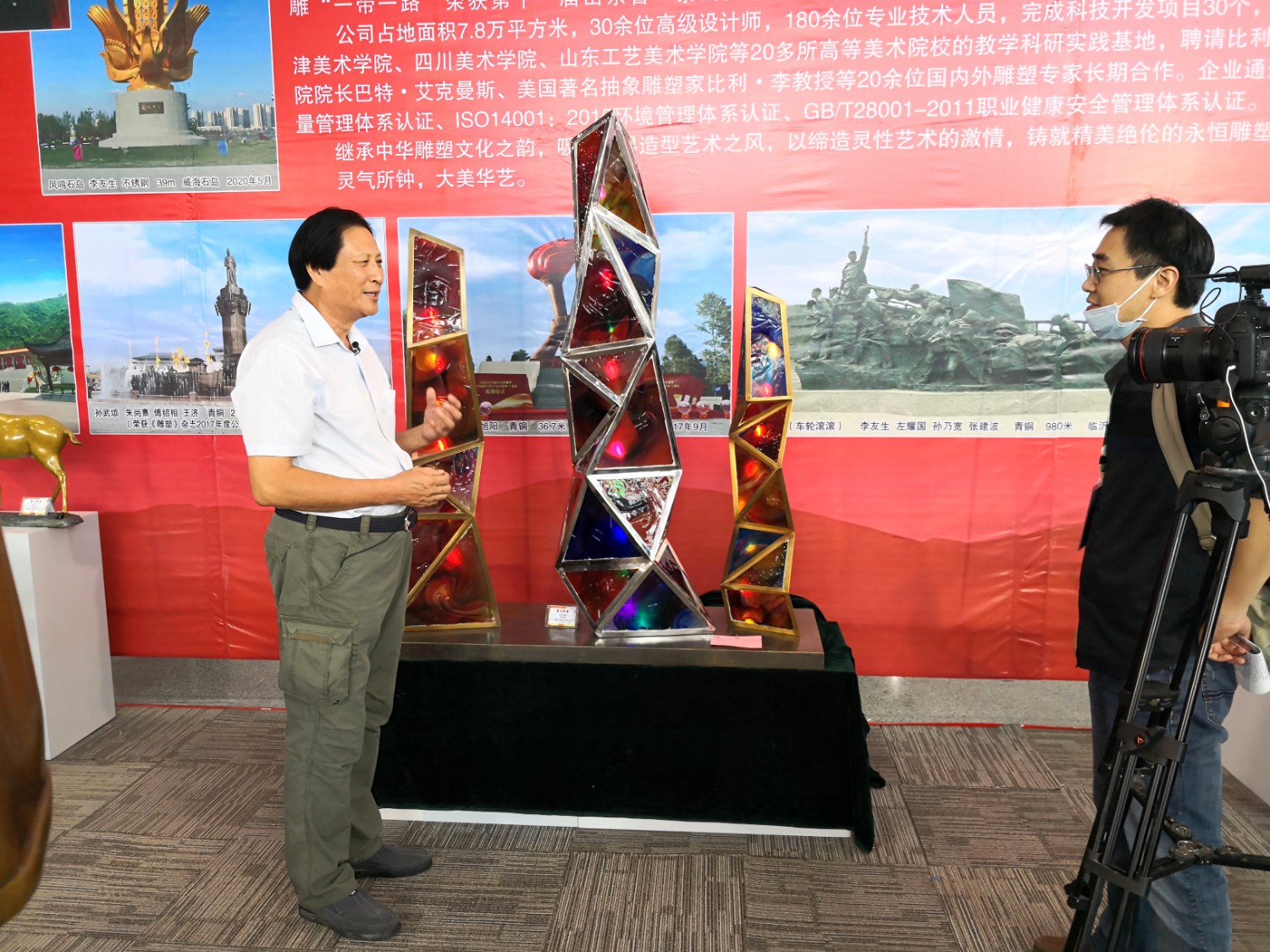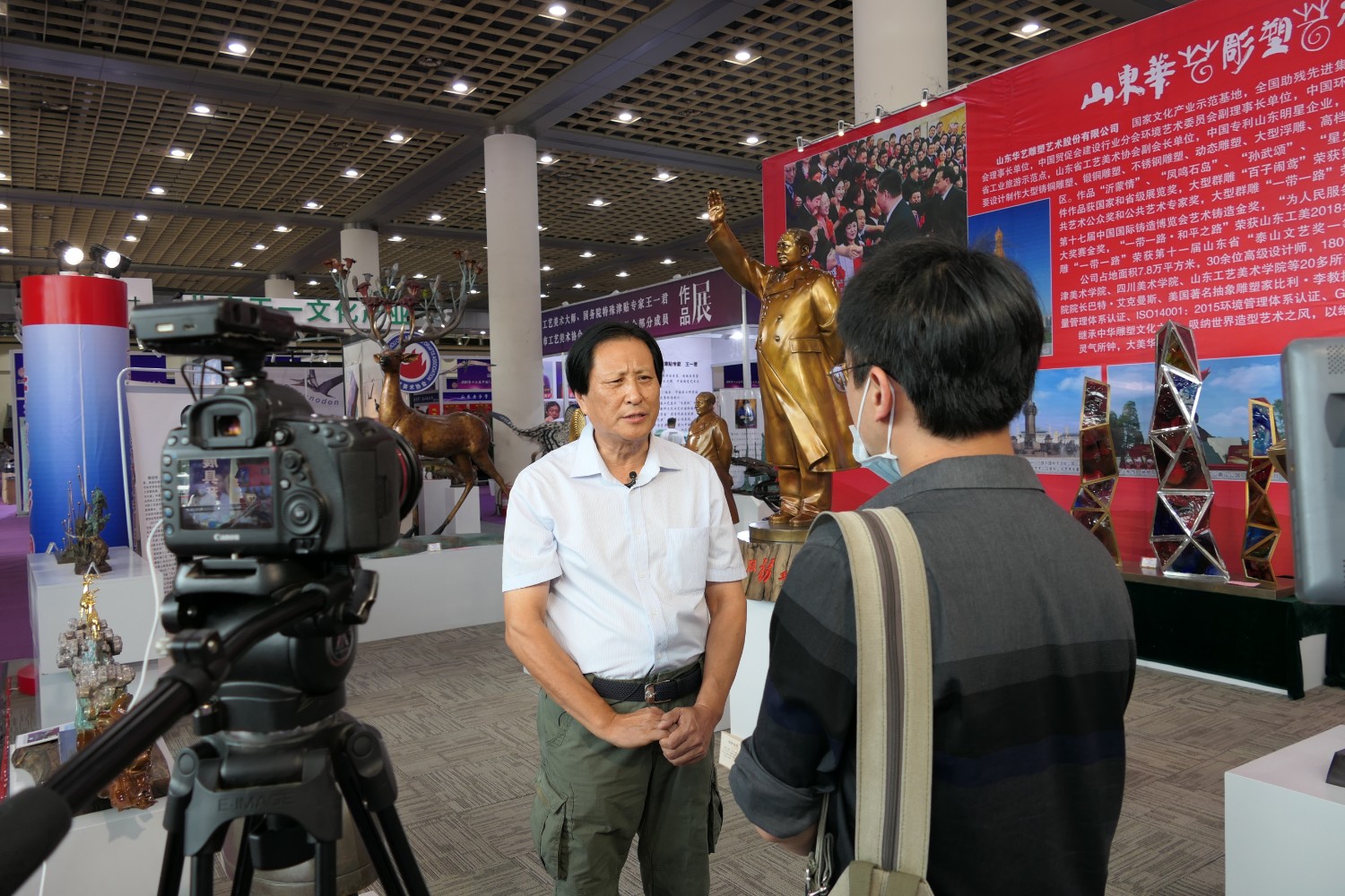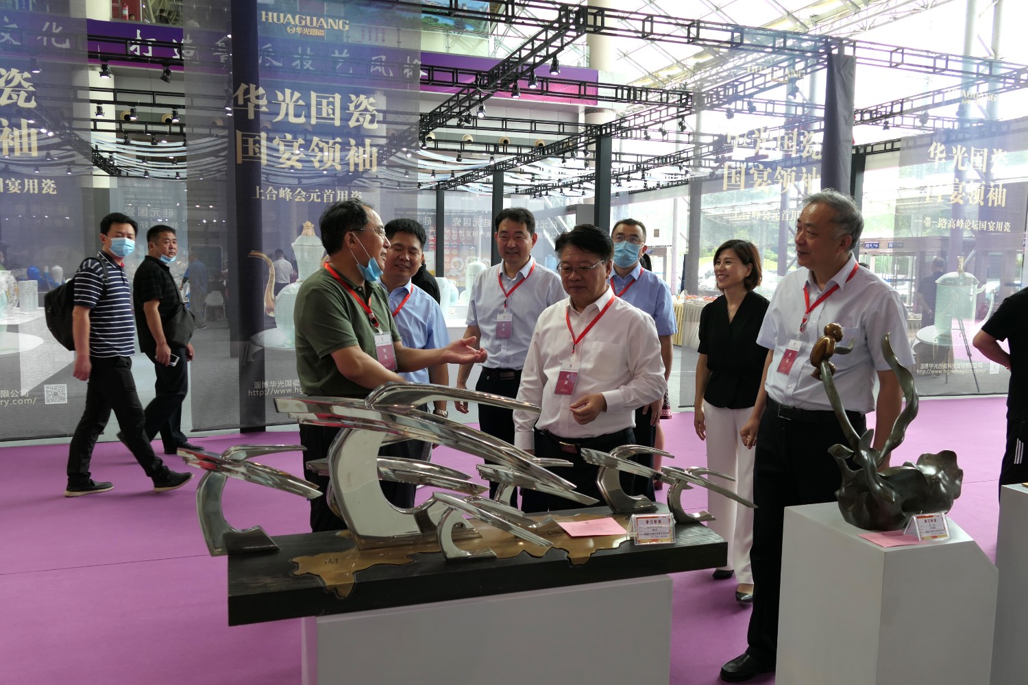 2021-2-32020年7月23日由山东省工艺美术协会、山东省工艺美术学会、山东省工艺美术研究所主办的“2020第十二届中国(山东)工艺美术博览会”在济南舜耕国际会展中心盛大开幕,出席本次开幕式的有山东省残疾人联合会一级巡视员张志超,山东省工业和信息化厅二级巡视员张忠军,山东省轻工集体企业联社党组成员、监事会主任柴本成,山东省文学艺术界联合会党组成员、副主席姜慧,山东省工业技师学院党委书记孙科顺,山东省财政厅总经济师文毅,民建山东省委副主委、山东省拍卖行业协会会长李伟,山东省市场监督管理局质量发展处一级调研员高青,淄博市委宣传部副部长、二级调研员荣先锋,山东省文化和旅游厅非遗处副处长蒋士秋,山东省轻工纺织工会委员会副主席匙涛,山东省工艺美术学会会长傅绍相等领导及嘉宾。山东省工艺美术协会会长袁敏主持开幕式。本届展会由山东省工艺美术协会、山东省工艺美术学会、山东省工艺美术研究所共同主办,有关省市工艺美术协会、各市工艺美术协会(学会)、省工艺美术协会各专业委员会(分会)协办,山东省工艺美术协会、山东省工艺美术学会、山东省工艺美术研究所承办。华艺雕塑精选81件作品参加展览,其中傅绍相作品《绿水青山》荣获山东工美年度精品奖,傅绍相作品《琉光璃韵》荣获“泰山桃木王”杯设计创新奖金奖;傅东作品《鹿鸣吉祥》荣获“泰山桃木王”杯设计创新奖金奖;牛运强作品《凝聚》荣获“泰山桃木王”杯设计创新奖金奖;傅思涵作品《鹿鹤同春》荣获“泰山桃木王”杯设计创新奖金奖;谭炳作品《飞武汉战疫情》荣获“泰山桃木王”杯设计创新奖金奖。